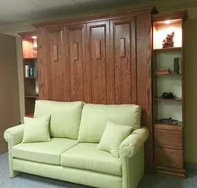 Limehouse Murphy bed – Raised panel Bullock murphy bed with custom Sofa. The sofa cushions will remove and the bed will fold between the arms.